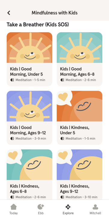 You can access the content for kids by going to the "Explore" tab and scrolling down until your see "Mindfulness with Kids"